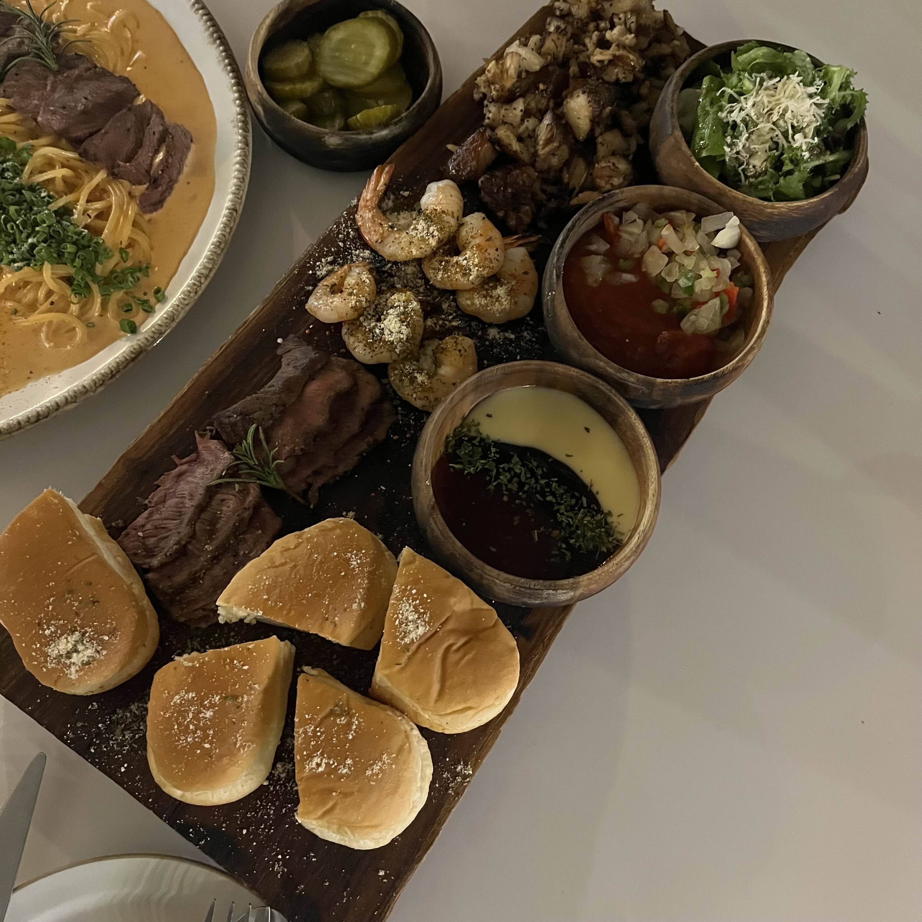 여러 소스와 고기, 새우를 종류별로 다양한 조합에 먹을 수 있었던 플레이트😘