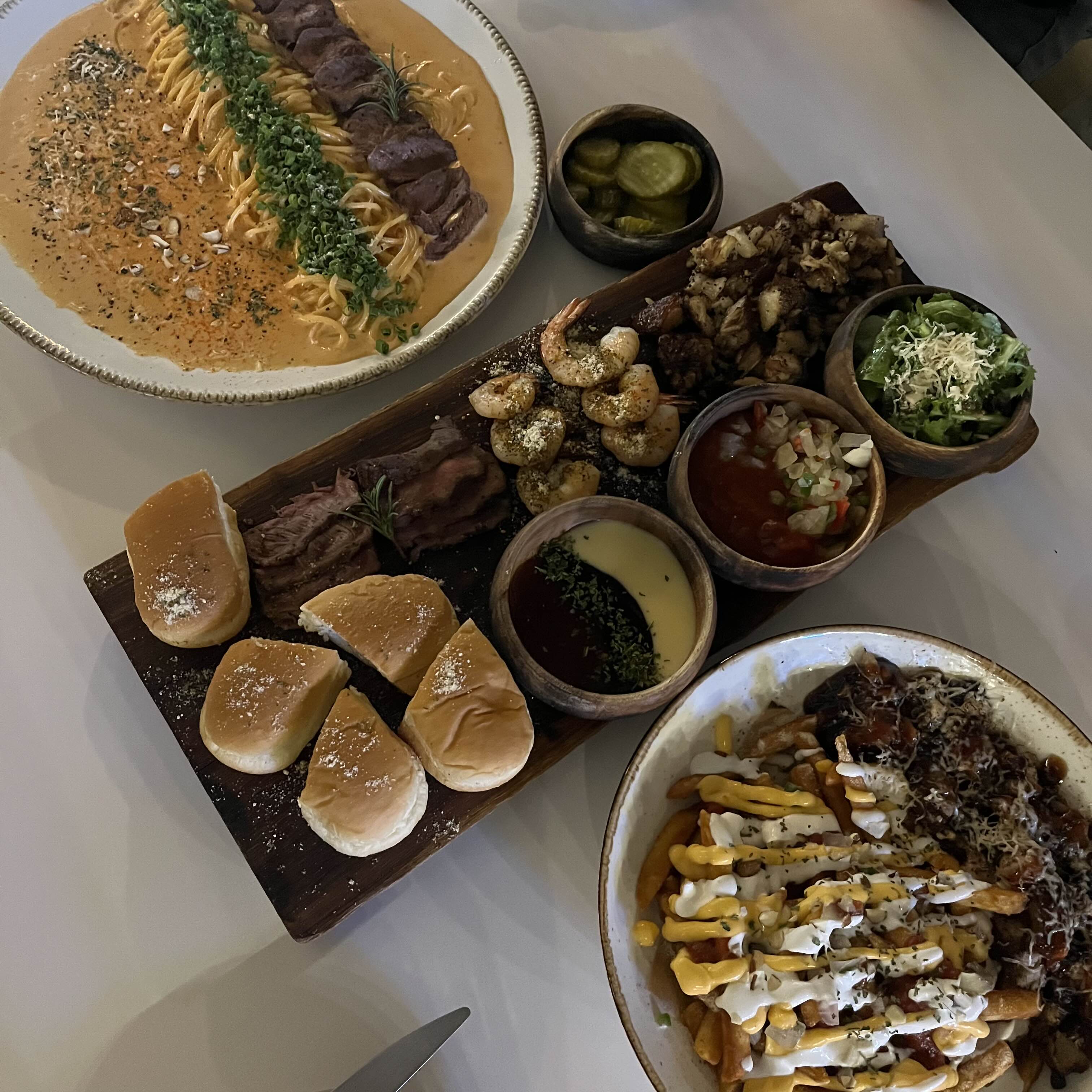 파스타, 스테이크, 플레이트